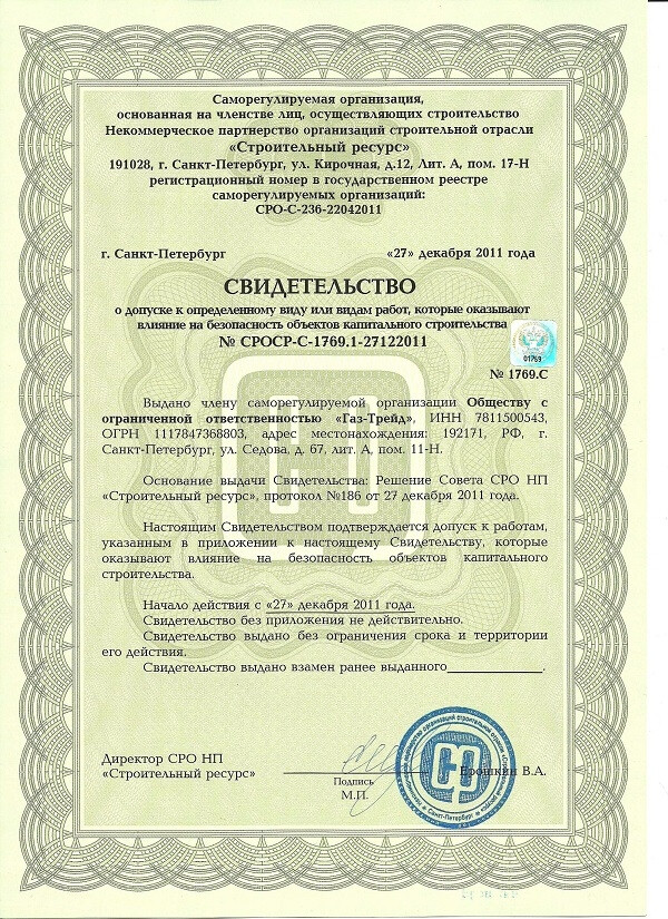 Имеем все необходимые для работы допуски и аттестации.